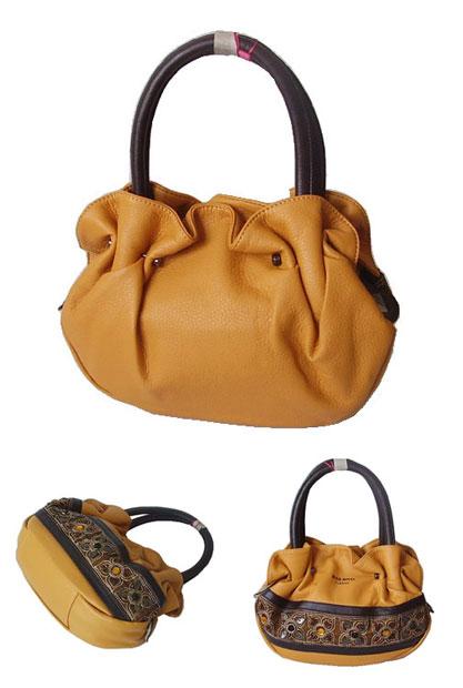 Bolso bandolera marrón de cuero natural con piedras decorativas