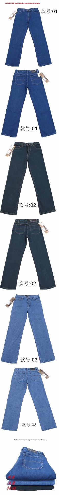 Jeans, vaqueros chinos - Proveedor # 2. Los modelos de pantalones vaqueros, jeans más básicos y de precios económicos. Siempre puede solicitar a este proveedor chino las muestras de tela denim, para definir la calidad y coste de pantalones deseado.