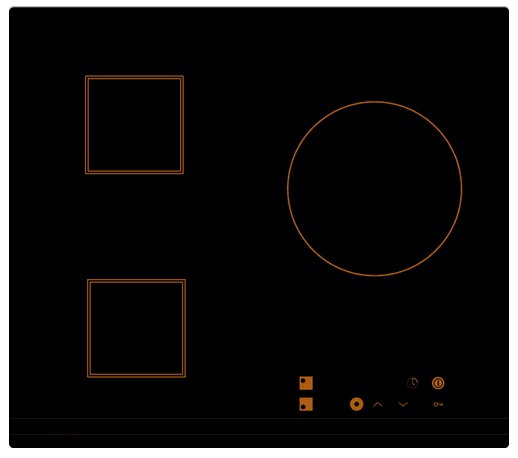 Encimera de inducción de 590 mm de color negro con 3 zonas de cocción de 180, 220 y 270 mm de diámetro. Incorpora sistema Sprint con control de 9 niveles, temporizador y sistema de seguridad de bloqueo del panel de mandos.