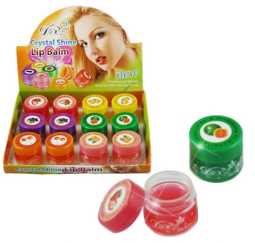 Bálsamo labial con brilo con sabores de frutas o vegetales como manzana, cereza, fresa, rosa, vainilla, avocado, etc. Diámetro de contenedor de bálsamo para labios: 31.5-40mm, volumen: 2.4-5g. Muchos diseños de contenedores disponibles.