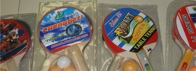 Son cuatro kit de raquetas y pelotas de tenis de mesa presentados, todos ellos tienen el mismo contenido, pero difieren en calidad. Los precios son: 0.39/0.44/0.59/0.75 USD, precio FOB - incluyen transporte desde la fábrica hasta el puerto en China y los aranceles de la Aduana china.